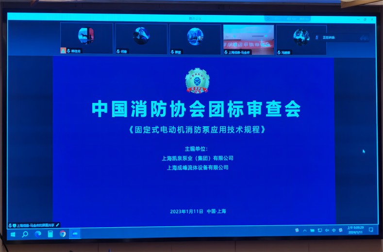 2024年1月11日,中國消防協(xié)會(huì )在上海采用現場(chǎng)與視頻方式組織召開(kāi)團體標準《固定式電動(dòng)機消防泵應用技術(shù)規程(送審稿)》審查會(huì ),會(huì )議邀請科研、設計、消防及相關(guān)企業(yè)的9名專(zhuān)家組成了審查專(zhuān)家組。
